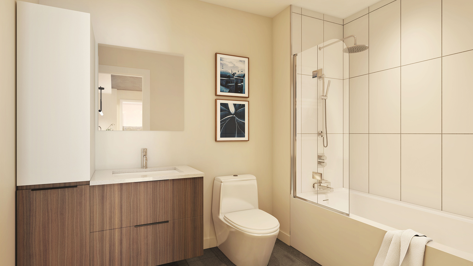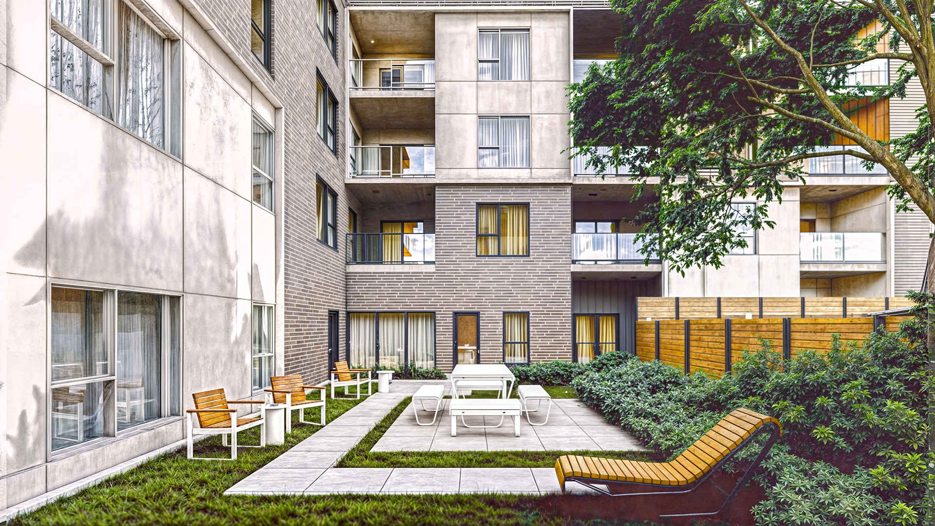 Entrez là où l’espace et la lumière vivent en parfaite synchronicité. Que vous recherchiez un studio minimaliste ou un vaste logement de trois chambres, vous trouverez votre idéal. Chaque chez-soi est aménagé avec soin, style et fonctionnalité. De chics comptoirs en quartz, des douches en céramique et des finitions tendance créent un espace de vie à la fois convivial et élégant. Les espaces communs taillés pour le bien-être : aire de détente, coworking lumineux, gym et studio de yoga, parcours de thermothérapie, cour intérieure verdoyante et grande terrasse sur le toit pour des soirées conviviales.