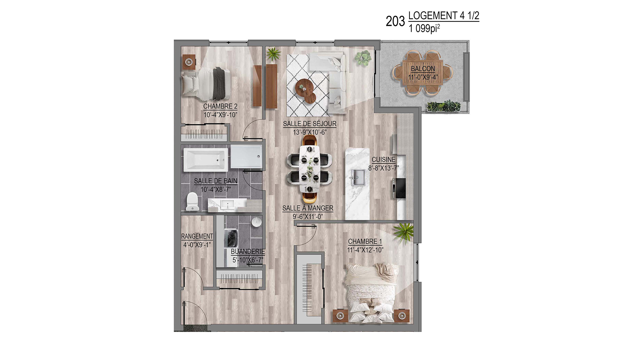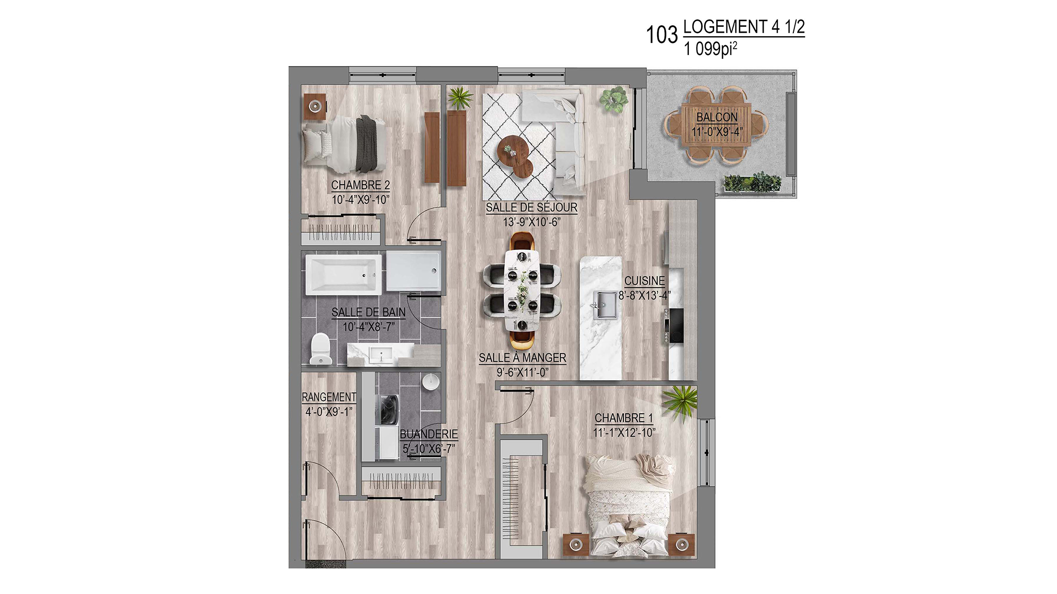 Quatrième immeuble de 12 unités d'un projet de 60 unités contemporaines, composé de 4 ½ et 5 ½ avec chacun leur grand balcon, en plus d'être accessible via une entrée privée pour le projet, saura assurément vous charmer.